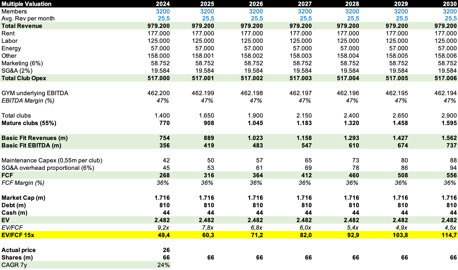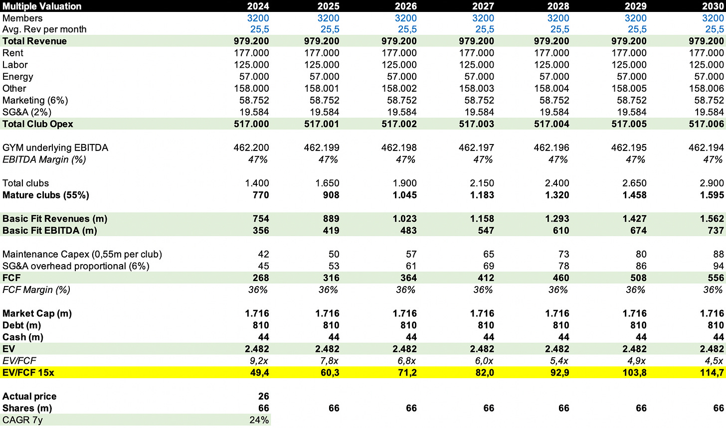 Basic Fit es una empresa muy malinterpretada. Se trata de una compañía con muchísimas depreciaciones contables (debido a su crecimiento) que enmascara un flujo de caja libre positivo y una clara rentabilidad del 30% en sus gimnasios maduros.