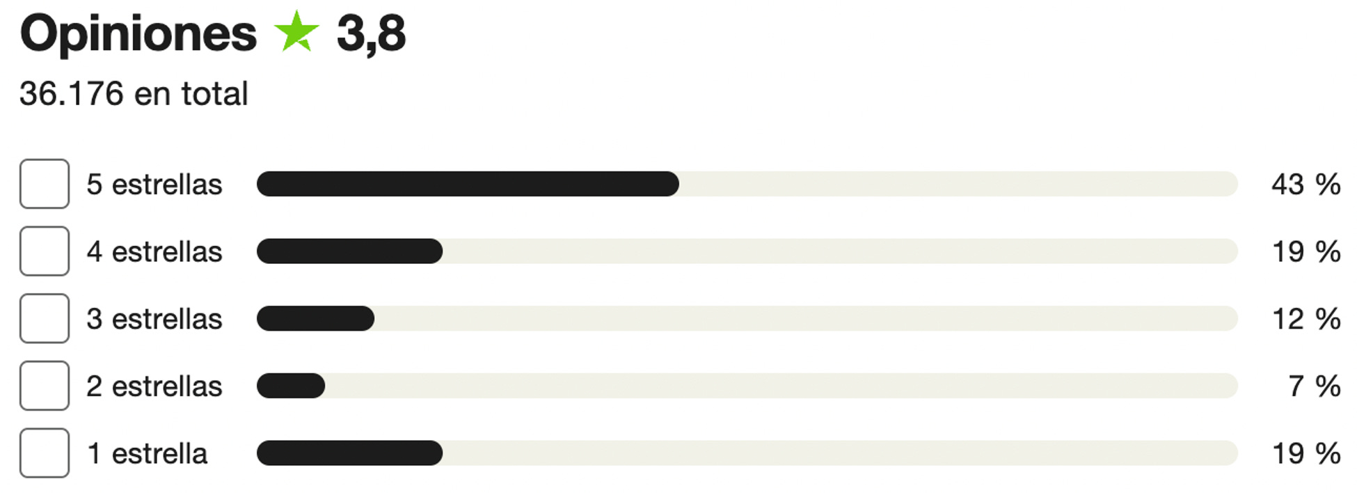 Una forma de medir la calidad del servicio es mediante las puntuaciones de Trustpilot.