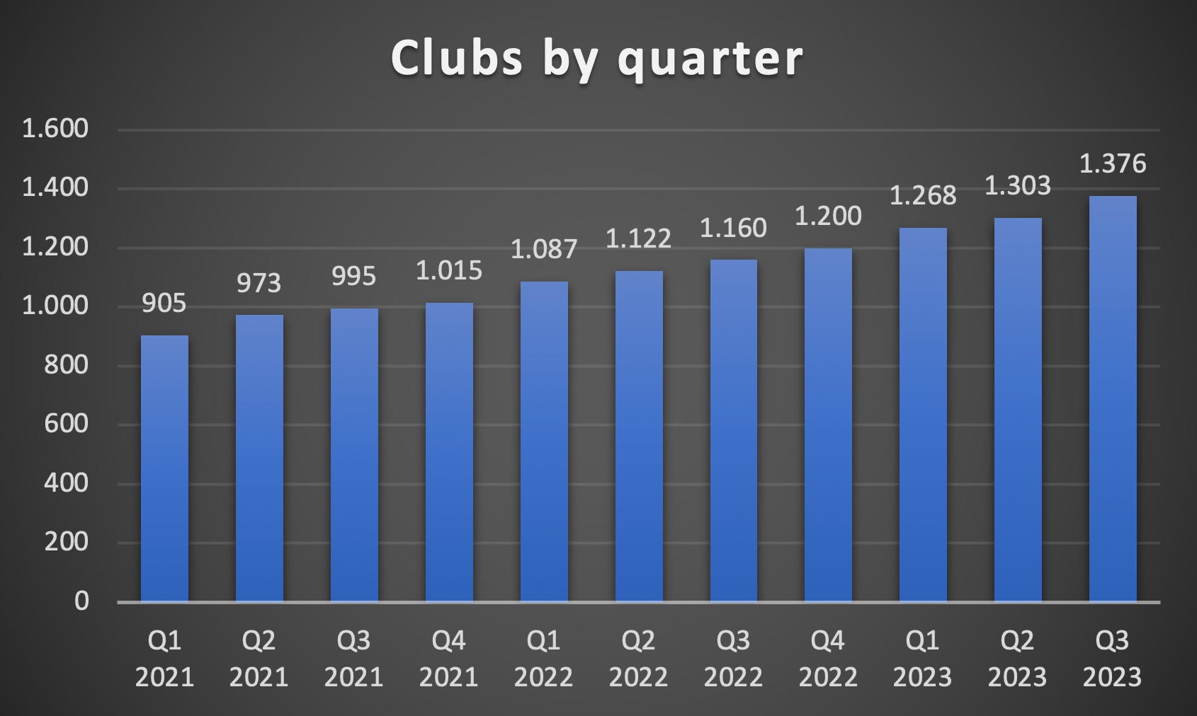 Clubes totales por trimestre (Q1 2021- Q3 2023)