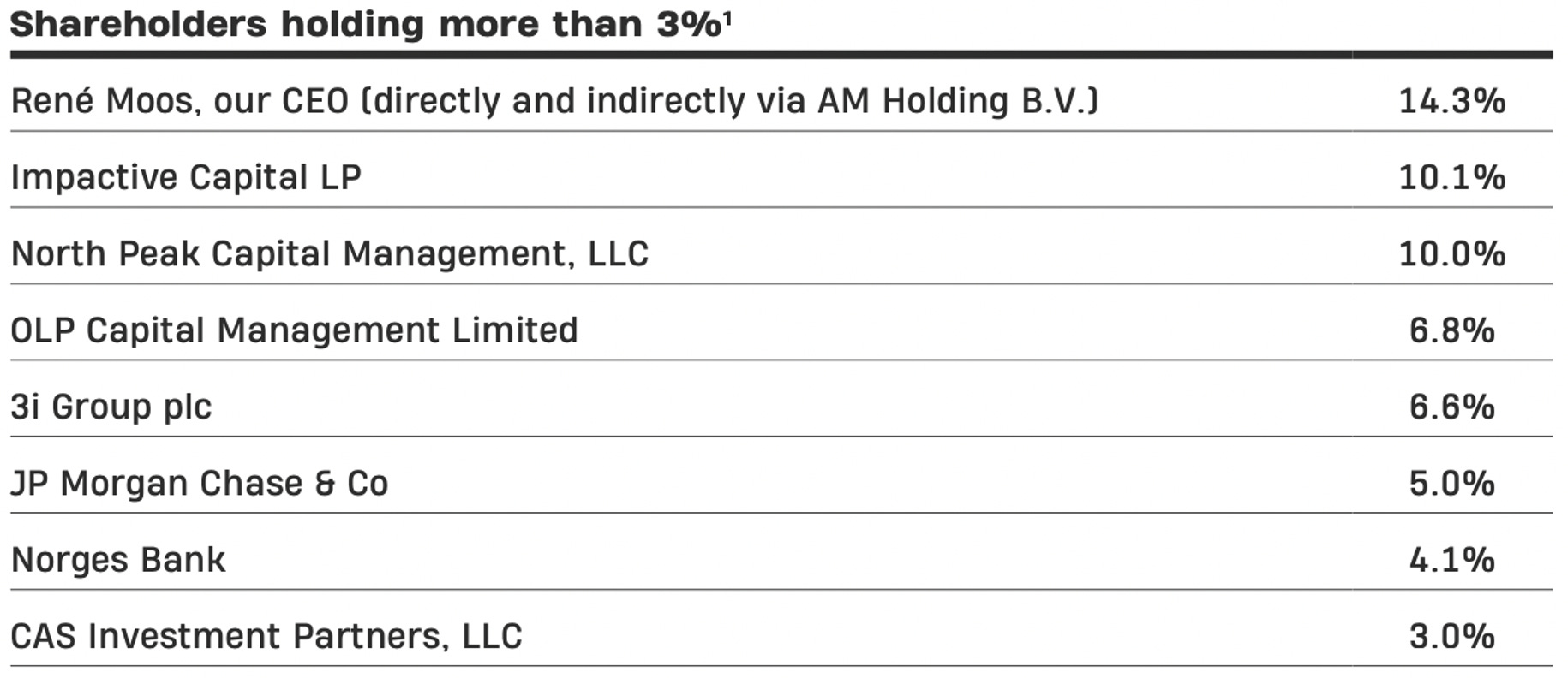 Rene Mos, tiene el 14% de la empresa. Lo cual son 281 millones de euros.