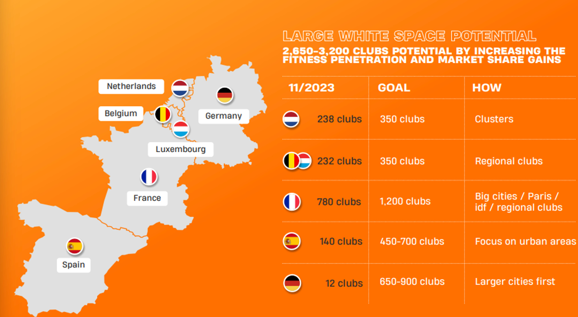 "El objetivo es hacer crecer nuestra red a más de 3.000 clubes en 2030. Ya no quiero dar objetivos de apertura anuales específicos para un país, debido a la competencia. Pero también porque necesitamos ser capaces de adaptarnos a los desarrollos macro y gestionar nuestra balance general. Y recibimos muchas llamadas que van un poco lentas en Alemania, por ejemplo, así que no las recibiremos más.