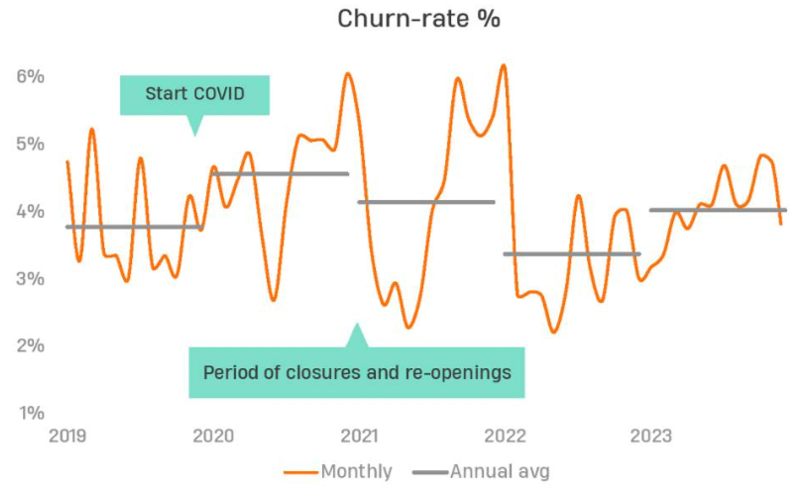 El churn normalizado de la empresa es del 4% al mes. La duración media de la estancia de un miembro de Basic Fit es de 22 a 23 meses, lo que, por breve que parezca, en realidad es mucho más largo que la media internacional de menos de 12 meses y ha aumentado desde los 19 meses que tenían cuando salieron a bolsa.