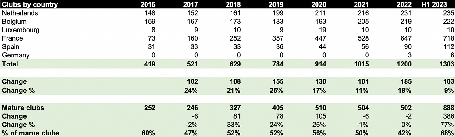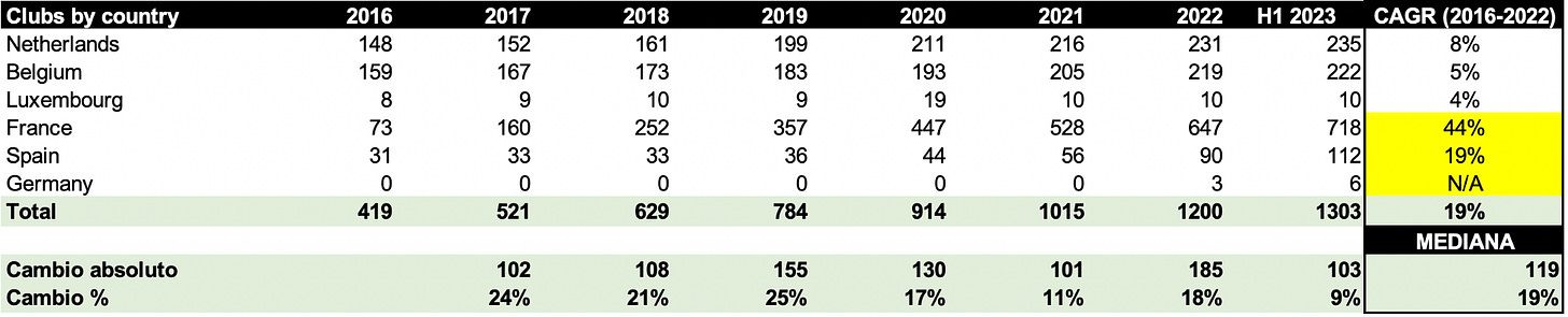 En total tiene 1.402 clubs vs. los 1.200 clubs que tenía en 2022.