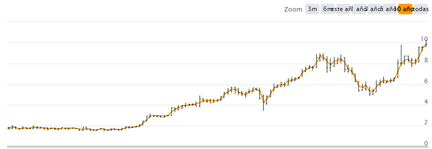 Los últimos 10 años ha crecido en bolsa a un 19% anual