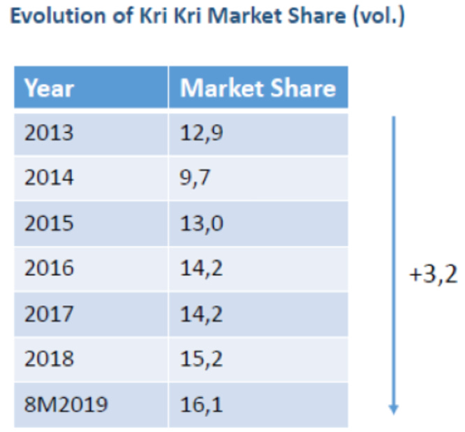 Kri Kri es el 2 productor de yogures en Grecia con el 17% de la cuota de mercado vendido en el 100% de los supermercados griegos.
