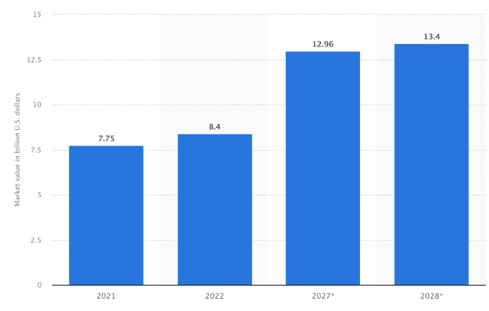 Se trata de un CAGR esperado de 2021 a 2028 del 8%, nada mal.