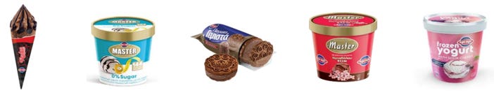 Aunque empezaron vendiendo helados, actualmente esa es la pata con menor peso en las ventas, por lo que no le daramos tanta importancia como al yogur. Aún así, las características actuales en cuanto a exportaciones (que es una gran parte de la tesis) son muy parecidad.