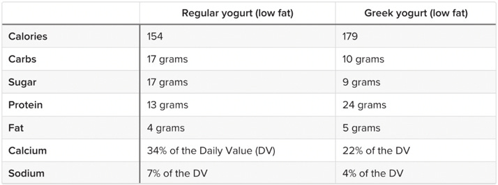 Este crecimiento se ha creado debido a sus características nutritivas ,que hacen al griego un yogurt más saludable. En la siguiente table podemos ver la diferencai de un yogur normal y uno griego. El griego tiene el doble de proteínas que el yogur normal y menos sodio, carbohidratos y azúcar y requiere de mucha más leche que el yogur normal para hacer un lote del mismo tamaño.